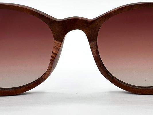 De Cateyes Earth Edition is ontworpen met een vloeiende curve in het houten frame, waardoor de rondingen van de bril worden geaccentureerd. Elke Cateyes is gemaakt uit een stuk pallisanderhout.